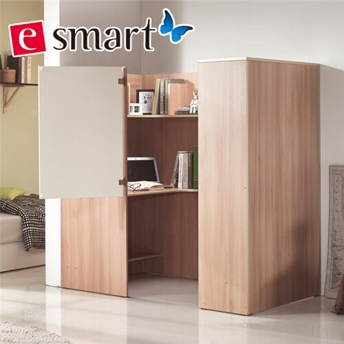 내 아이지만 그런 면은 나와 무척 다르다. 넓고 툭 터진 곳을 좋아하고 책상도 벽이나 창을 향하기 보다는 벽을 등지고 넓은 면을 향해 앉기 좋아한다. 특히 머리 위에 뭔가 있는 것을 싫어한다. 다락방 처럼 지붕이 납작한 곳은 괜찮은데, 놀숲처럼 2층으로 되어있는 아래쪽 공간도 싫어한다. 높은 곳을 잠자리로 활용하고 침대 아래쪽에 책상이나 소파를 두고 활용하는 방법 은 나로서는 시도하지 못할 인테리어 방식이다. 막내는 그런 공간은 물론, 캐비닛 처럼 문닫고 들어가는 그런 책상 도 좋아한다. 어렸을 때에는 책상 밑에도 곧잘 들어가있곤 했다.